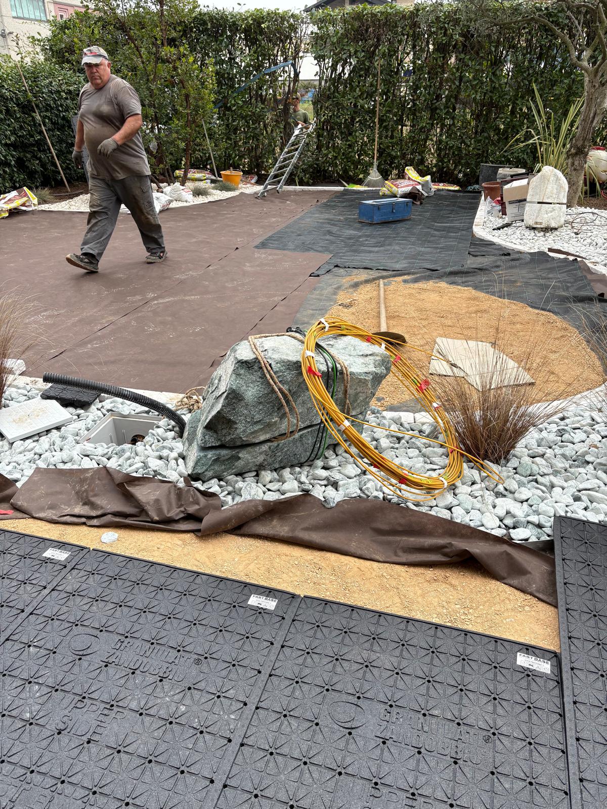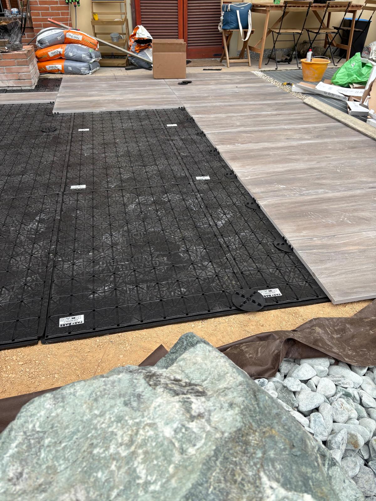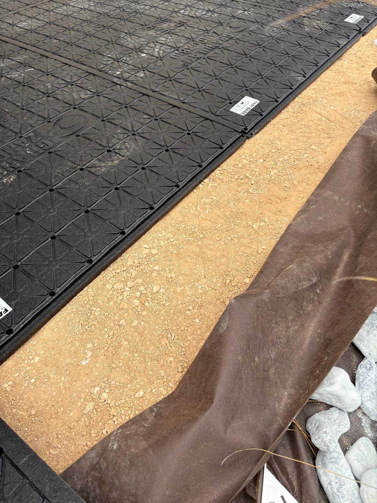 FAST BASE a réduit les travaux de terrassement et a permis de travailler facilement même sur des sols irréguliers. La pose est devenue simple, régulière et rapide, avec un alignement précis sur toute la surface du patio. La planéité obtenue a amélioré le confort et l’esthétique de l’espace extérieur.