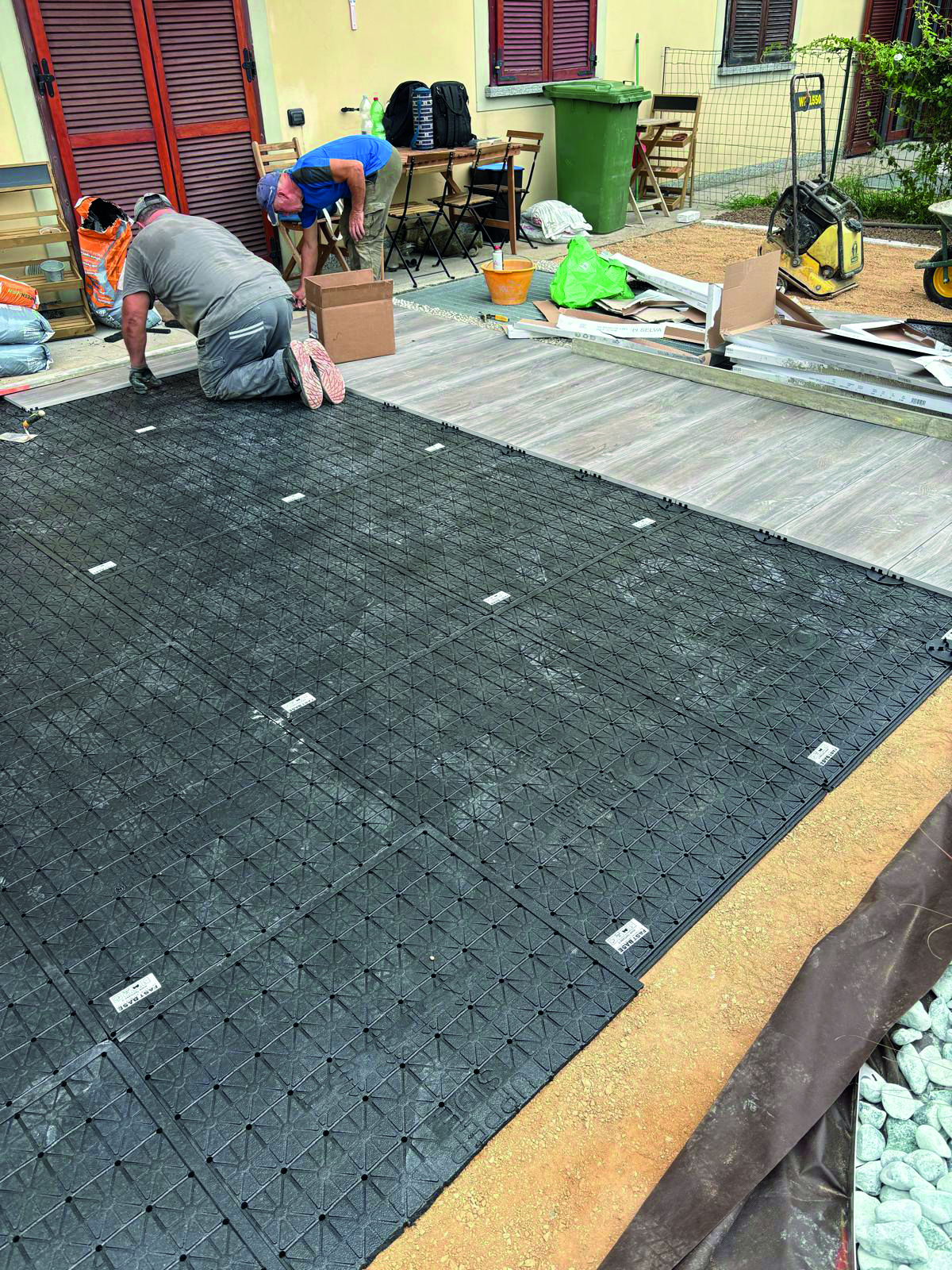 La structure de FAST BASE a soutenu chaque dalle avec fiabilité et a réparti les charges de manière uniforme. Cela a simplifié toutes les phases de la pavimentation et a mis en valeur la texture naturelle des dalles en pierre frittée, résistantes au temps et aux intempéries.